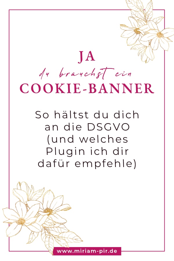 Ich nutze seit letztem Jahr das deutsche Plugin „Real Cookie Banner Pro„. Für nur 49 € pro Jahr schützt ihr euer Business und eure Webseite schnell und unkompliziert gegen Abmahnungen. Über den obigen Link kannst du 20 % im ersten Jahr auf alle Real Cookie Banner Tarife sparen. Dazu einfach den Gutscheincode „MIRIAMPIR“ eingeben.