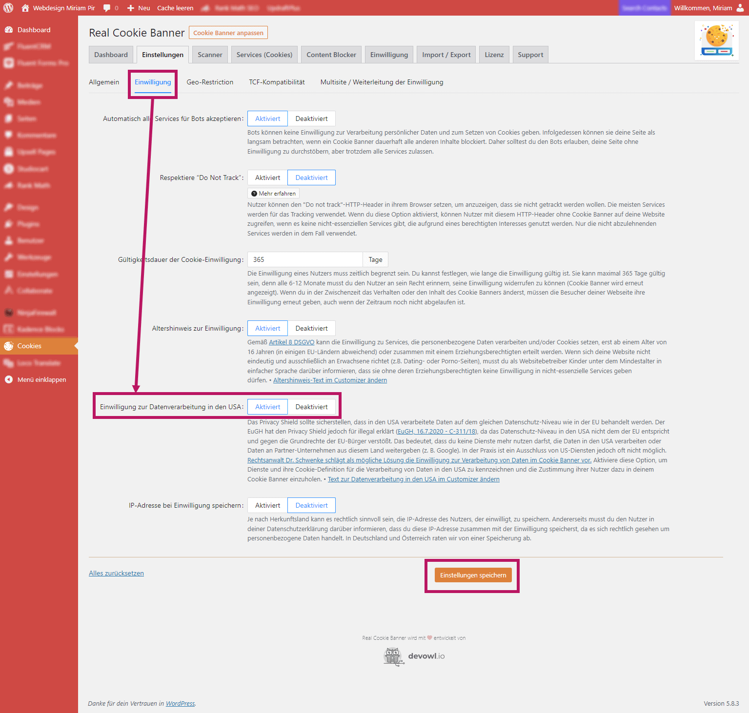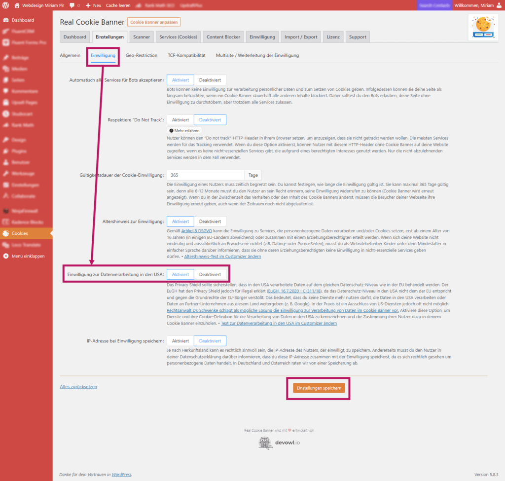 Tipp: Nutze für deine WordPress-Webseite ein Cookie-Consent-Plugin wie z.B. „Real Cookie Banner“ oder „Borlabs Cookies“. So bist du auf der sicheren Seite.
